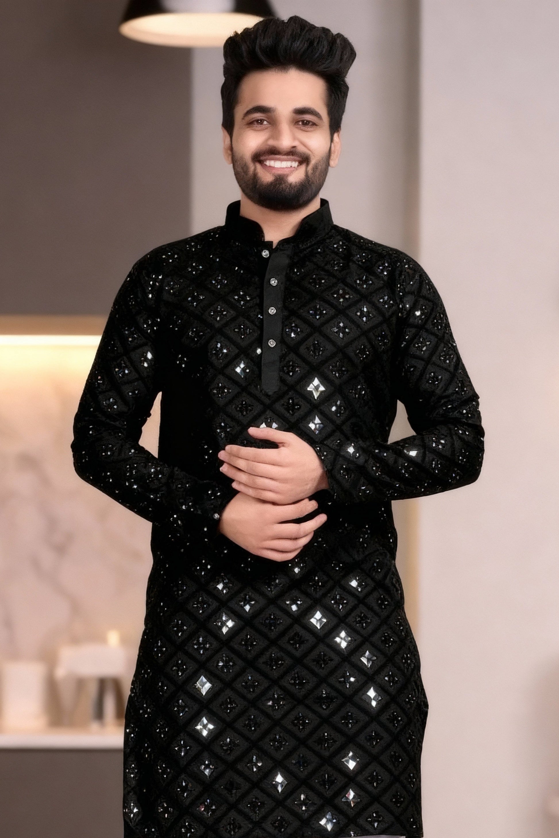 Step out in style with this classic black kurta. Crafted from soft, breathable fabric, it ensures all-day comfort while giving you a sleek and sophisticated look. Perfect for casual outings, festive occasions, or traditional events, this kurta pairs effortlessly with jeans, churidar, or trousers. A wardrobe essential for anyone who loves simplicity with a touch of elegance